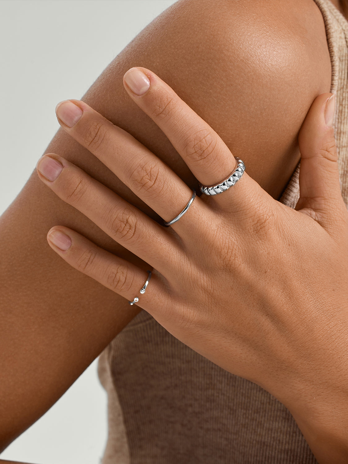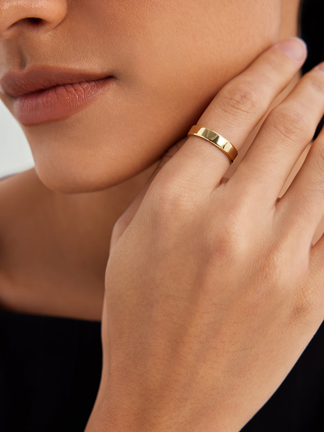 This ring can be worn individually as a simple accessory or paired with other rings for a layered or stacked look. It is suitable for casual wear, work environments, or formal occasions. The neutral design allows it to coordinate easily with a variety of jewelry styles and outfits, making it appropriate for regular daily use.