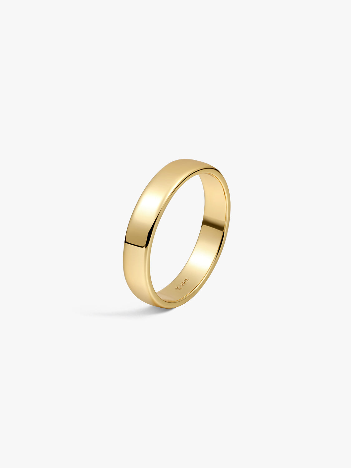 The ring is constructed from metal materials and finished with a consistent polished surface across the entire exterior. The solid band design helps maintain its shape during regular use. The inner surface is smooth to support comfortable wear on the finger for extended periods without irritation.